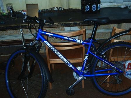 Ak jā - aizmirsu vēl piebilst, ka rullēju uz V-brake sistēmas (kaut kā joprojām nepatīk disku bremzes un ekspluatācijā šitās ar ērtākas un lētākas - tā ka mainīt netaisos). Priekša 3 zobrati, aizmugurē - 8, tātad kopā 24 ātrumi... Nav tādu navarotu kā spizdometrs un vēl burkas turamais, bet tas tikai laika jautājums... Un tā kā braukāšu uz darbu un tas var gadīties arī lietainā laikā, tad paņēmu pašus lētākos plastmasas dubļiniekus...